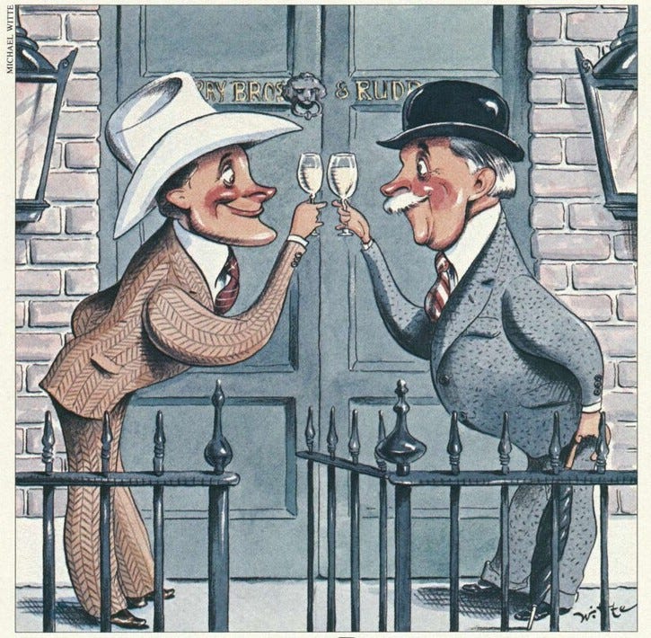 You might be thinking, This is interesting English history, Derrick, but isn’t Y’allogy a newsletter about the people, places, and past of Texas? Where does Texas fit into this story about No. 3 St. James’s and Berry Bros. & Rudd?