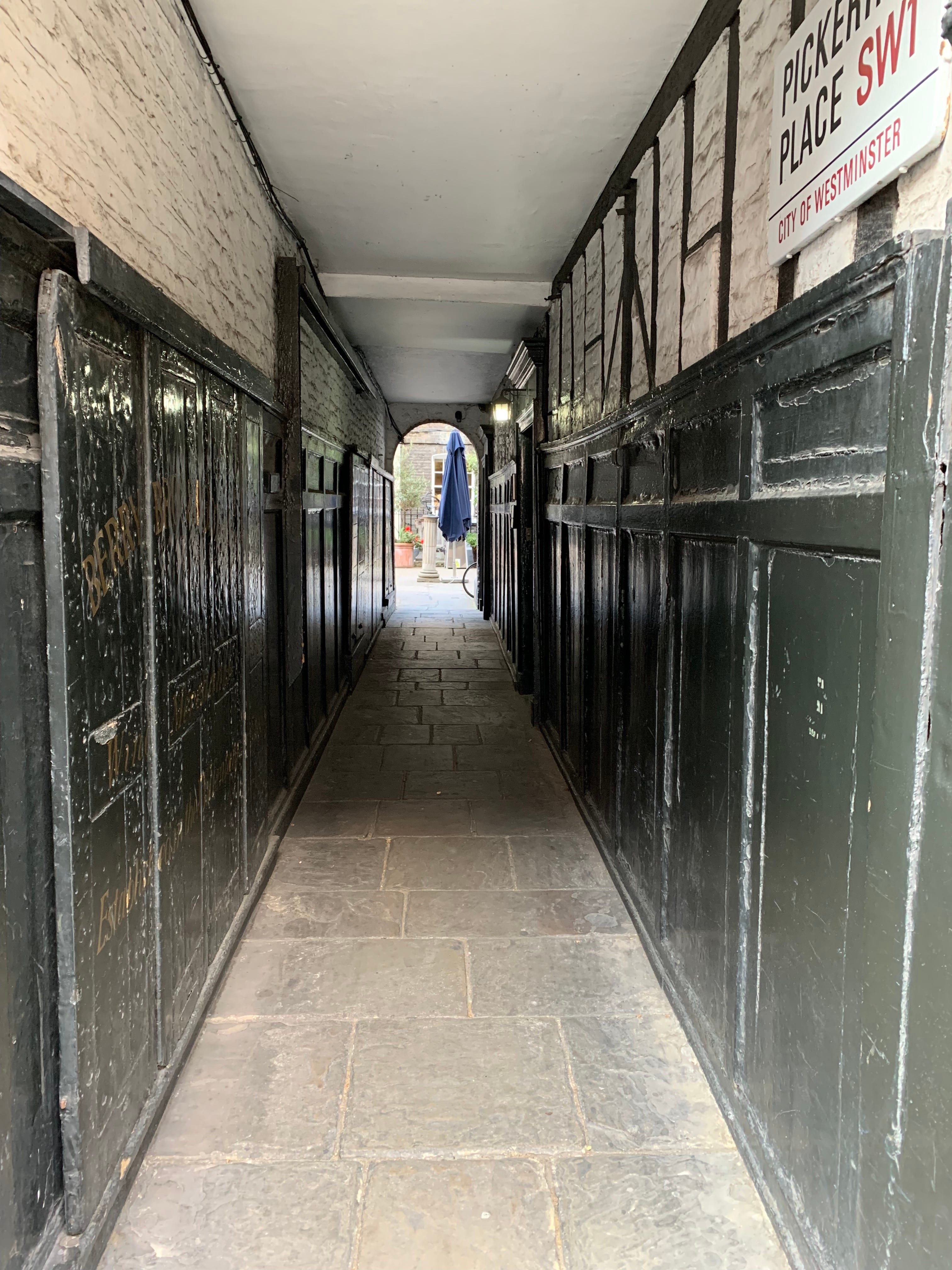 An arched and dark passageway at No. 3 St. James’s is the entrance to Pickering Place, the small courtyard formerly known as Stroud Court. Its own history is fascinating. Not only is it the smallest of London’s public squares, it was the location where gentleman once amused themselves with dice and card and bloodsports, betting on bear-baiting and cock-fighting. It was also the place where blood disputes were settled with swords. According to legend, Beau Brummel, a close friend of King George IV and inventor of the cravat, killed a man in a duel there. According to history, in 1812, it was the location of the last deadly duel in London. The names of the participants and the outcome, unfortunately, have been lost to time. Pickering Place was also the one time home of exiled Napoleon III (1838–1848), who used the cellars of Berry Brothers to hold secret meetings, as well as British novelist Graham Greene.