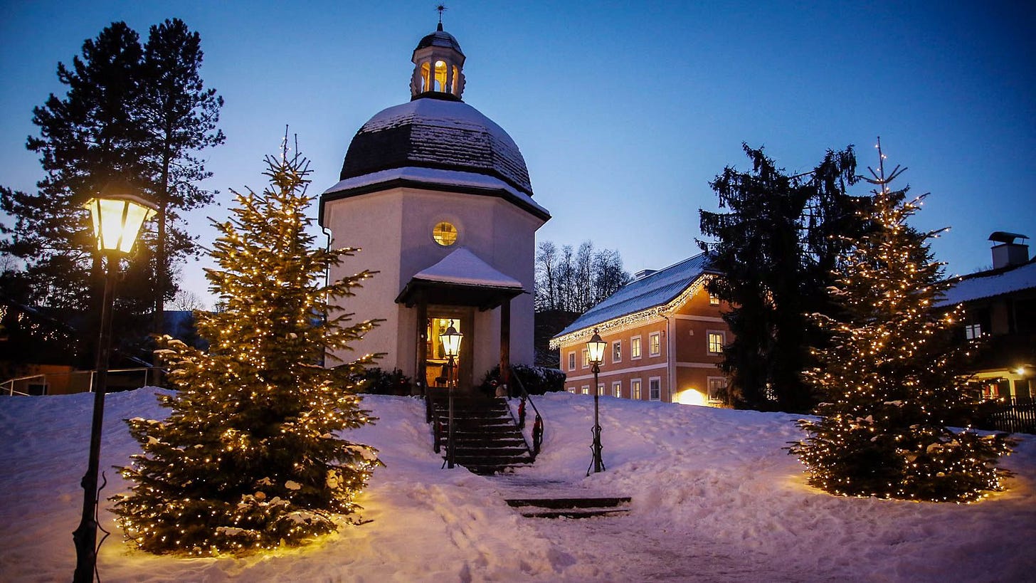 A year following the fighting, all was silent and calm, especially on a snowy winter’s eve. Joseph Mohr, the assistant priest of Saint Nicholas parish in the little village of Oberndorf bei Salzburg, was responsible for parish music, often composing poems and lyrics for special services. While walking from his grandfather’s house to his church in the silence of that night—the only sound the muffled crunch of his boots in the snow—the words of a poem began to form in his mind: Stelle Nacht, Heilige Nacht—“Silent Night, Holy Night.”