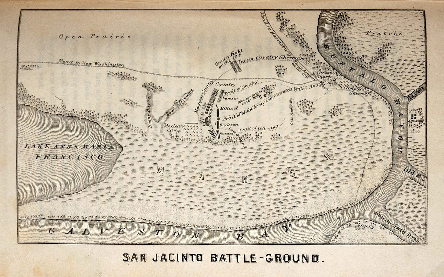1 This was typical military scuttlebutt. Houston didn’t attack on April 11, 1836, but continued his easterly retreat toward the Sabine River, attacking ten days later at a place called San Jacinto.